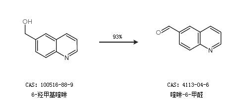 1.通過6-羥甲基喹啉合成喹啉-6-甲醛,收率約93%;