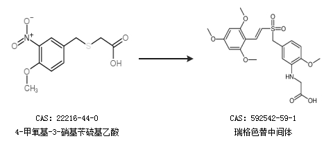 2.通過4-甲氧基-3-硝基芐硫基乙酸合成瑞格色替中間體