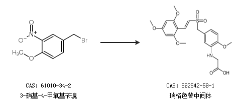 1.通過3-硝基-4-甲氧基芐溴合成瑞格色替中間體
