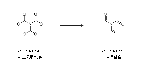 1.通過(guò)三(二氯甲基)胺合成三甲酰胺