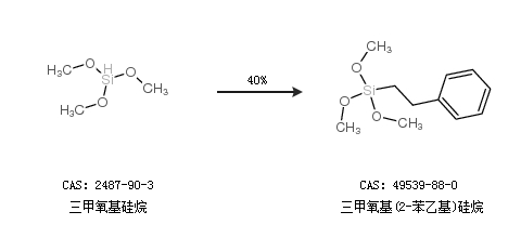 1.通過(guò)三甲氧基硅烷合成三甲氧基(2-苯乙基)硅烷,收率約40%;