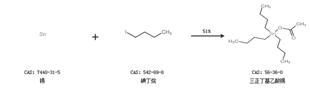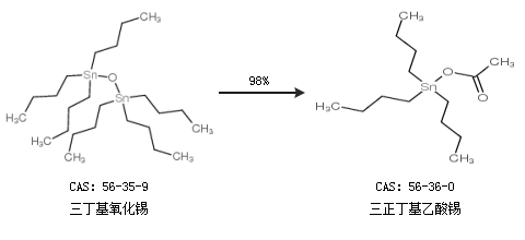 1.通過三丁基氧化錫合成三正丁基乙酸錫,收率約98%;