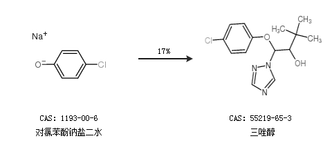 2.通過對(duì)氯苯酚鈉鹽二水合成三唑醇,收率約17%;