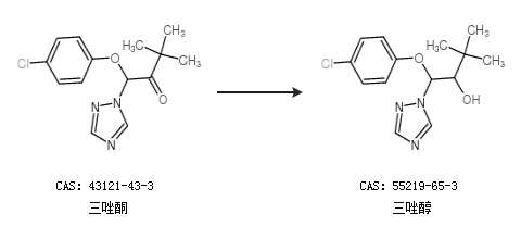 中文別名 百坦;羥銹寧;1-(4-氯苯氧基)-3,3-二甲基-1-(1H-1,2,4三唑-1基)丁基-2-醇;三泰隆;α-叔丁基-β-(4-氯苯氧基)-1H-1,2,4-三唑-1-乙醇;1-(4-氯苯氧基)-1(1H-1,2,4-三唑)-3-二甲基-2-丁醇;1-(4-氯苯氧基)-1-(1H-1,2,4-三唑-1-基)-3,3-二甲基-丁-2-醇;