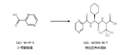 2.通過2-甲酸吡嗪合成特拉匹韋中間體