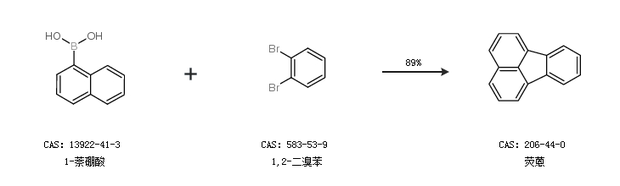 2.通過1-萘硼酸和1,2-二溴苯合成熒蒽,收率約89%;
