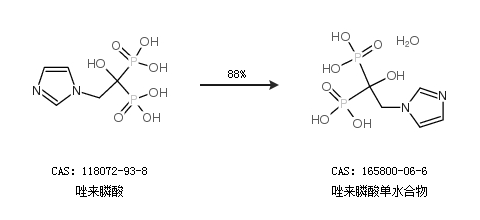 1.通過唑來膦酸合成唑來膦酸單水合物,收率約88%;