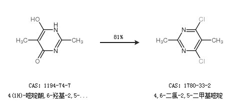 1.通過4(1H)-嘧啶酮,6-羥基-2,5-二甲基-合成4,6-二氯-2,5-二甲基嘧啶,收率約81%;