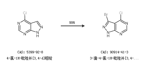 1.通過(guò)4-氯-1H-吡唑并[3,4-d]嘧啶合成3-溴-4-氯-1H-吡唑并[3,4-d]嘧啶,收率約99%;