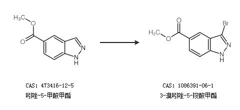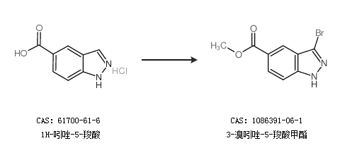 1.通過吲唑-5-甲酸甲酯合成3-溴吲唑-5-羧酸甲酯