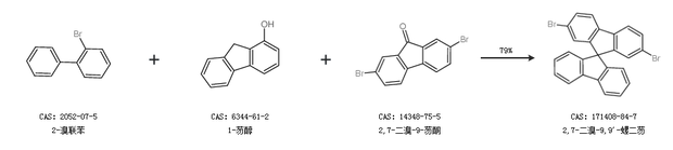 2.通過2-溴聯(lián)苯、1-芴醇和2,7-二溴-9-芴酮合成2,7-二溴-9,9''-螺二芴,收率約79%;