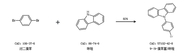 1.通過對二溴苯和咔唑合成9-(4-溴苯基)咔唑,收率約82%;