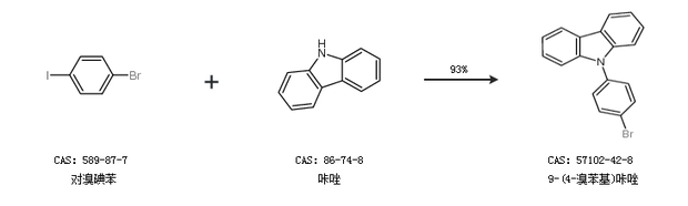 2.通過對溴碘苯和咔唑合成9-(4-溴苯基)咔唑,收率約93%;