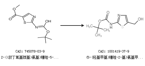 2.通過2-((叔丁氧基羰基)氨基)噻唑-5-羧酸甲酯合成(5-(羥基甲基)噻唑-2-基)氨基甲酸叔丁酯