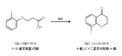 1.通過3-(2-氟苯氧基)丙酸合成8-氟-2,3-二氫苯并吡喃-4-酮,收率約98%;