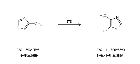 1.通過(guò)4-甲基噻唑合成5-溴-4-甲基噻唑,收率約37%;