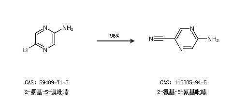 1.通過2-氨基-5-溴吡嗪和氰化鉀合成2-氨基-5-氰基吡嗪,收率約95%;