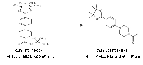 2.通過4-(4-Boc-1-哌嗪基)苯硼酸頻哪醇酯合成4-(4-乙?;哙?苯硼酸頻那醇酯