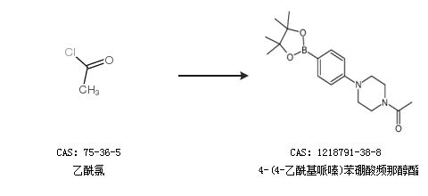 1.通過乙酰氯合成4-(4-乙酰基哌嗪)苯硼酸頻那醇酯