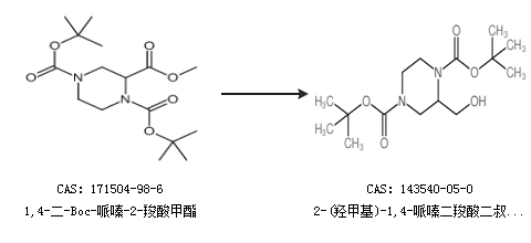 1.通過1,4-二-Boc-哌嗪-2-羧酸甲酯合成2-(羥甲基)-1,4-哌嗪二羧酸二叔丁酯
