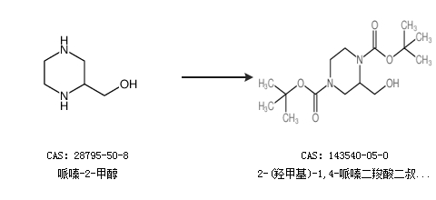 2.通過哌嗪-2-甲醇合成2-(羥甲基)-1,4-哌嗪二羧酸二叔丁酯