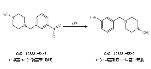 1.通過1-甲基-4-(3-硝基苯)哌嗪合成3-(4-甲基哌嗪-1-甲基)-苯胺,收率約97%;