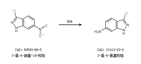 1.通過(guò)3-氯-6-硝基-1H-吲唑合成3-氯-6-氨基吲唑,收率約95%;