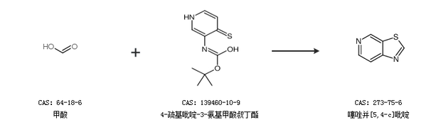 2.通過(guò)甲酸和4-疏基吡啶-3-氨基甲酸叔丁酯合成噻唑并[5,4-c]吡啶