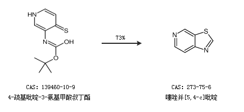 1.通過(guò)4-疏基吡啶-3-氨基甲酸叔丁酯合成噻唑并[5,4-c]吡啶,收率約73%;