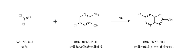 1.通過(guò)光氣和2-氨基-3-羥基-5-氯吡啶合成6-氯惡唑并[4,5-b]吡啶-2(3H)-酮,收率約83%;