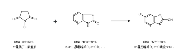 2.通過(guò)N-氯代丁二酰亞胺和2,3-二氫吡啶并[2,3-d][1,3]噁唑-2-酮合成6-氯惡唑并[4,5-b]吡啶-2(3H)-酮