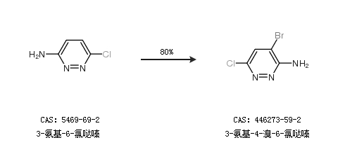 1.通過3-氨基-6-氯噠嗪合成3-氨基-4-溴-6-氯噠嗪,收率約80%;