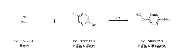 1.通過甲醇鈉和2-氨基-5-氯吡嗪合成2-氨基-5-甲氧基吡嗪,收率約67%;