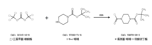 1.通過(guò)二(三氯甲基)碳酸酯和1-Boc-哌嗪合成4-氯羰基-哌嗪-1-羧酸叔丁酯,收率約89%;