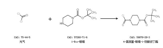 2.通過(guò)光氣和1-Boc-哌嗪合成4-氯羰基-哌嗪-1-羧酸叔丁酯
