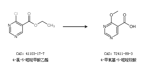 1.通過(guò)4-氯-5-嘧啶甲酸乙酯合成4-甲氧基-5-嘧啶羧酸