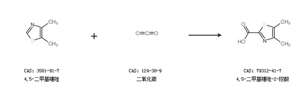 1.通過4,5-二甲基噻唑和二氧化碳合成4,5-二甲基噻唑-2-羧酸