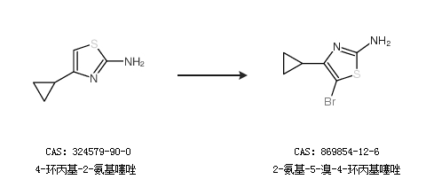 1.通過(guò)4-環(huán)丙基-2-氨基噻唑合成2-氨基-5-溴-4-環(huán)丙基噻唑