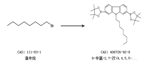 1.通過(guò)溴辛烷合成9-辛基-2,7-雙(4,4,5,5-四甲基-1,3,2-二噁硼烷-2-基)-9h-咔唑