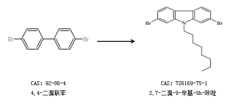 2.通過(guò)4,4-二溴聯(lián)苯合成2,7-二溴-9-辛基-9h-咔唑