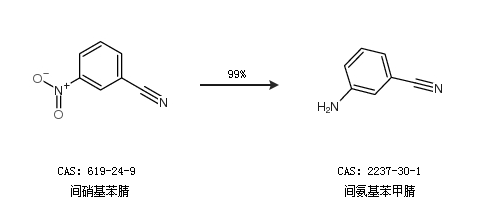 1.通過(guò)間硝基苯腈合成間氨基苯甲腈,收率約99%;