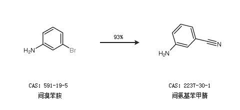2.通過(guò)間溴苯胺合成間氨基苯甲腈,收率約93%;