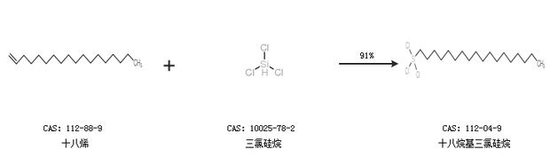 2.通過十八烯和三氯硅烷合成十八烷基三氯硅烷,收率約91%;