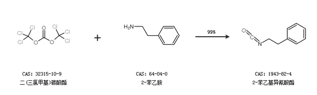 1.通過二(三氯甲基)碳酸酯和2-苯乙胺合成2-苯乙基異氰酸酯,收率約99%;