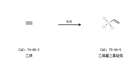 2.通過乙炔合成乙烯基三氯硅烷,收率約91%;