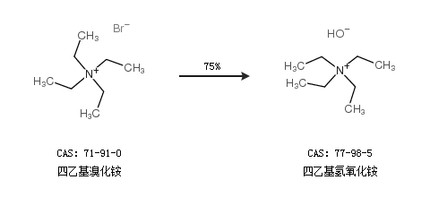 1.通過(guò)四乙基溴化銨合成四乙基氫氧化銨,收率約75%;