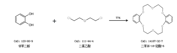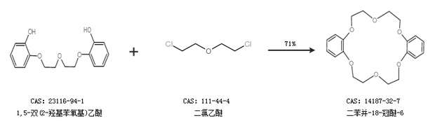 2.通過(guò)1,5-雙(2-羥基苯氧基)乙醚和二氯乙醚合成二苯并-18-冠醚-6,收率約71%;
