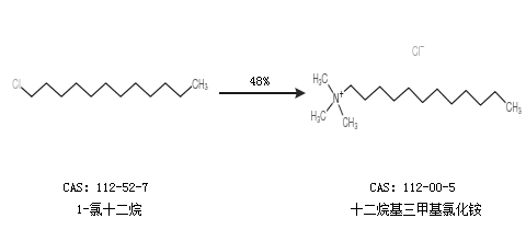 1.通過1-氯十二烷合成十二烷基三甲基氯化銨,收率約48%;