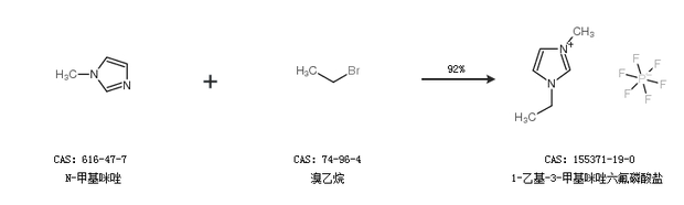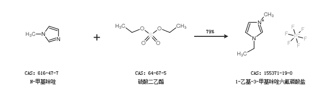 2.通過(guò)N-甲基咪唑和硫酸二乙酯合成1-乙基-3-甲基咪唑六氟磷酸鹽,收率約79%;