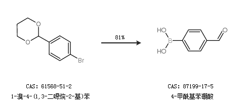 1.通過1-溴-4-(1,3-二噁烷-2-基)苯合成4-甲?;脚鹚幔章始s81%;